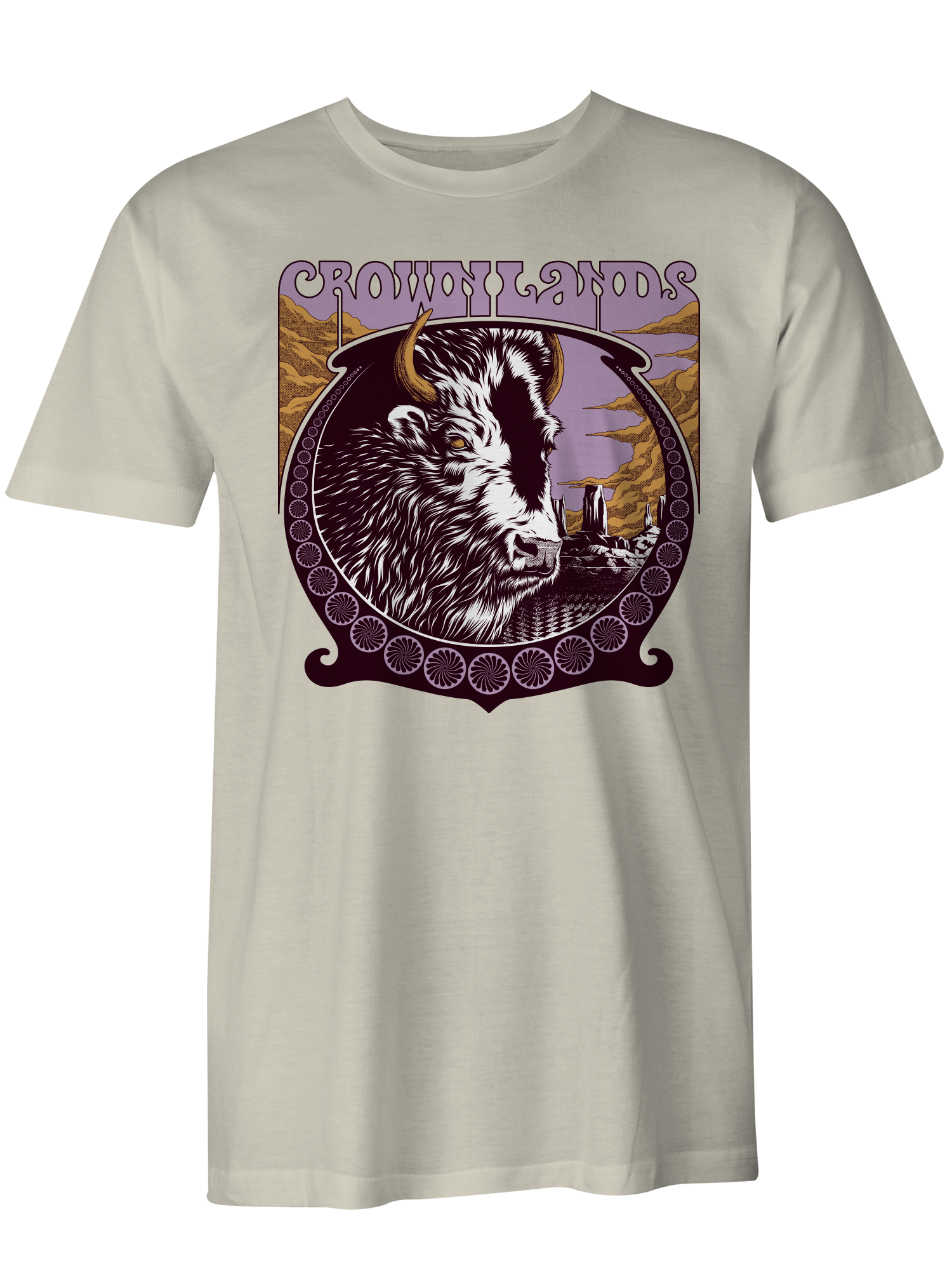 A bold and beautiful new take on the Buffalo t-shirt from Crown Lands, now available in natural.