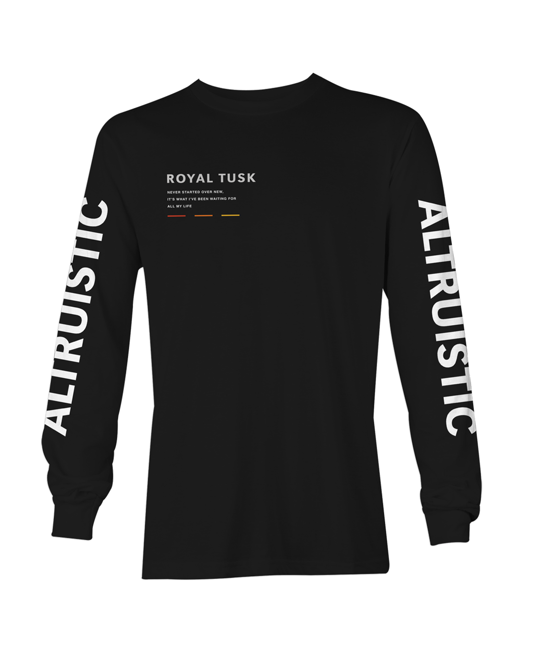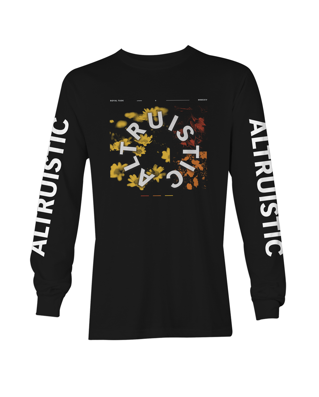 Celebrate the band’s newest album with the Altruistic Longsleeve from Royal Tusk. Available now in Black.