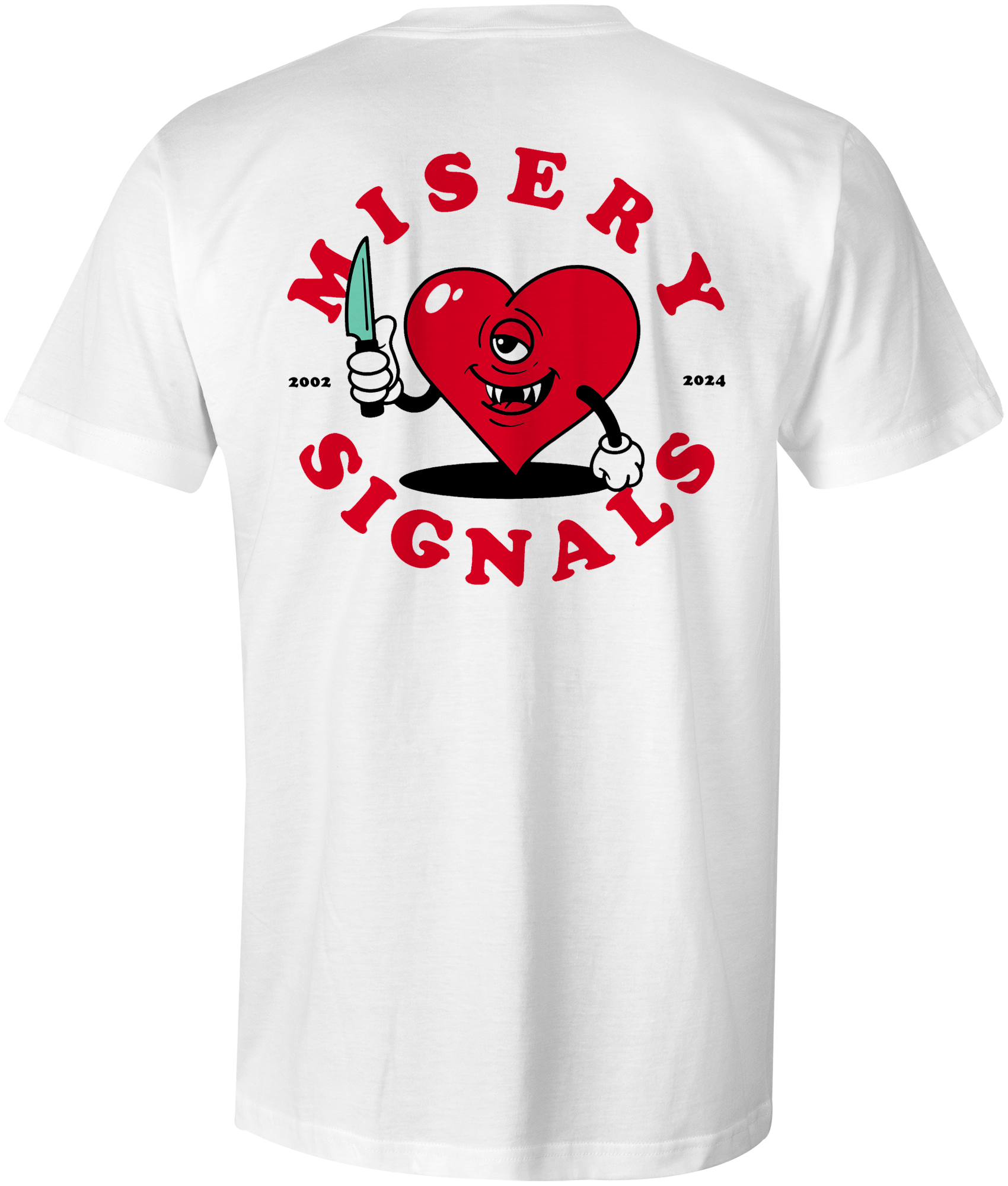 Celebrate the grand finale with the Bitter Hearts T-Shirt from Misery Signals. Available now in white.