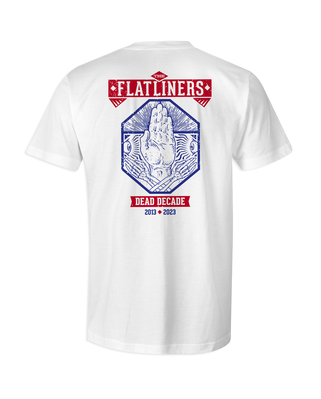 Celebrate 10 years of The Flatliners’ iconic album Dead Language with the Dead Decade T-Shirt. Available now in white.
