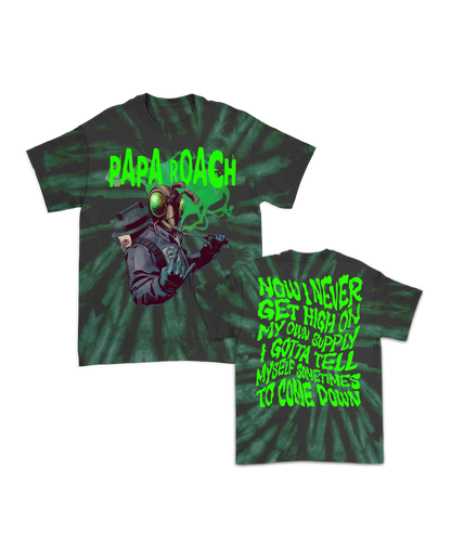 Look fresh through the fumes with the Exterminator T-Shirt from Papa Roach, available now on limited edition green tie dye.