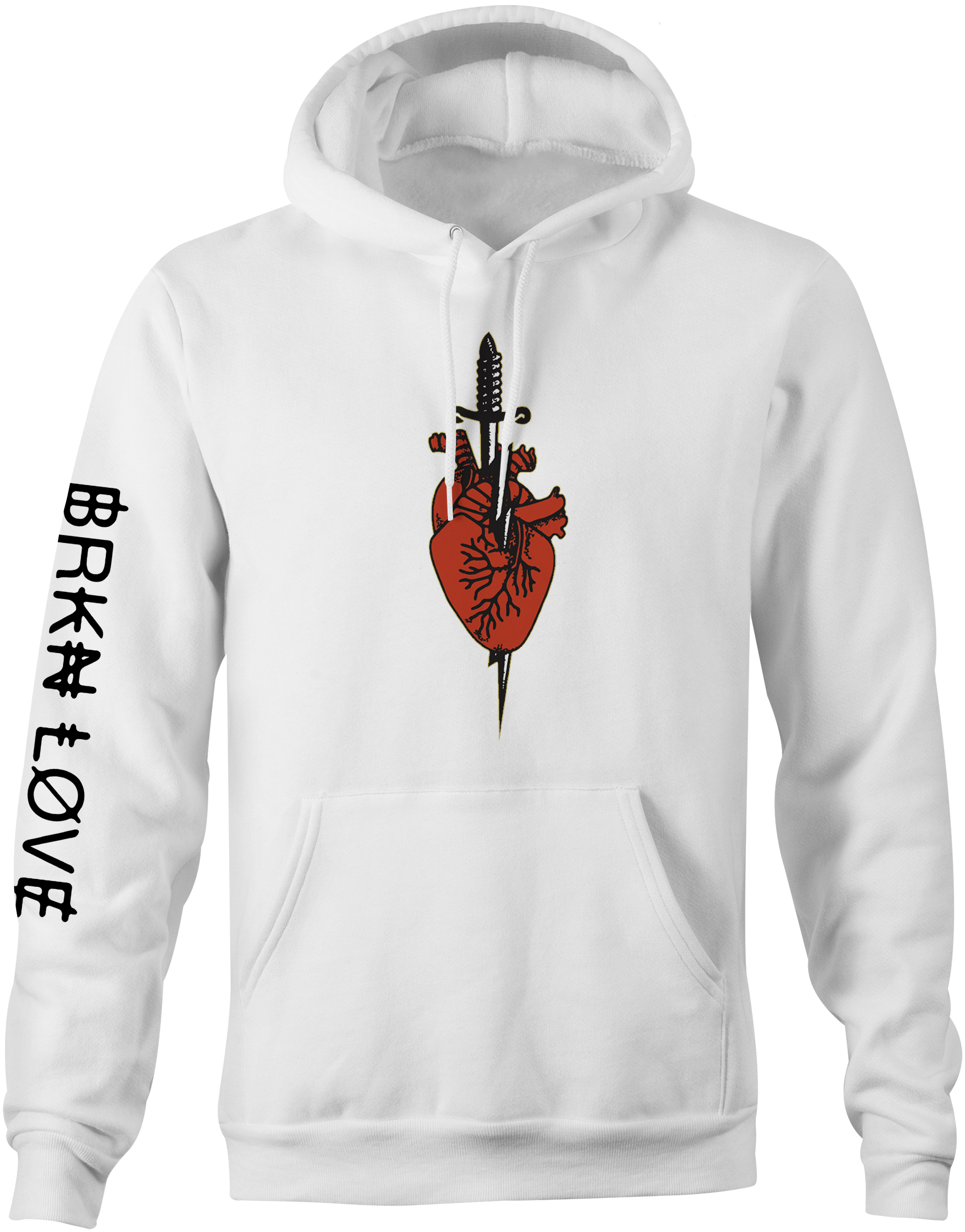 A total blood pumper, the Heart Pullover Hoodie from BRKN Love is available now in white.